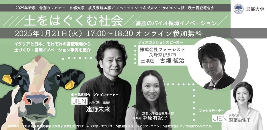 主催 京都大学 企画 JIEN LLP で、JIENは私も食と土のスペシャリスト斉藤由佳子さんと共同代表をさせていただいている社会的協同組合です。