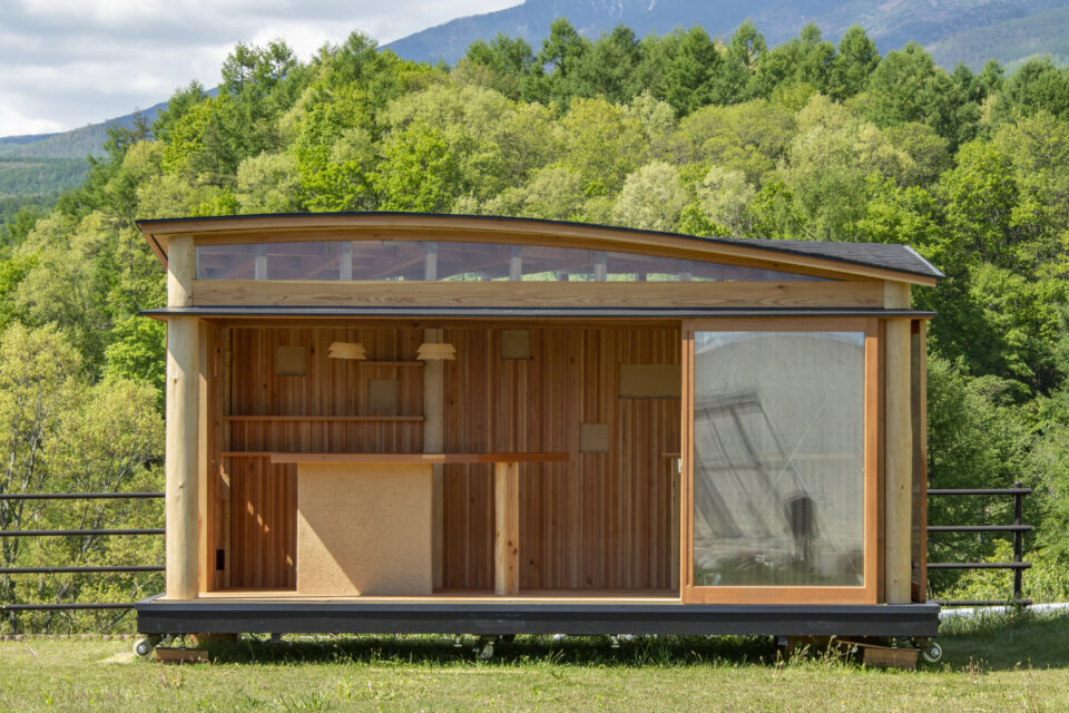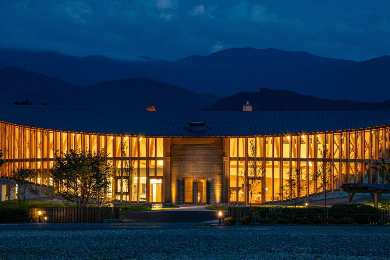 Quasi il 100% dei 330 m2 di legname usato è cedro e cipresso massiccio di Nebamura, prefettura di Nagano. All’esterno, le tavole di cedro sono rifinite con una finitura eco-compatibile che permetterà al design dell’edificio di invecchiare elegantemente nel suo ambiente montano.