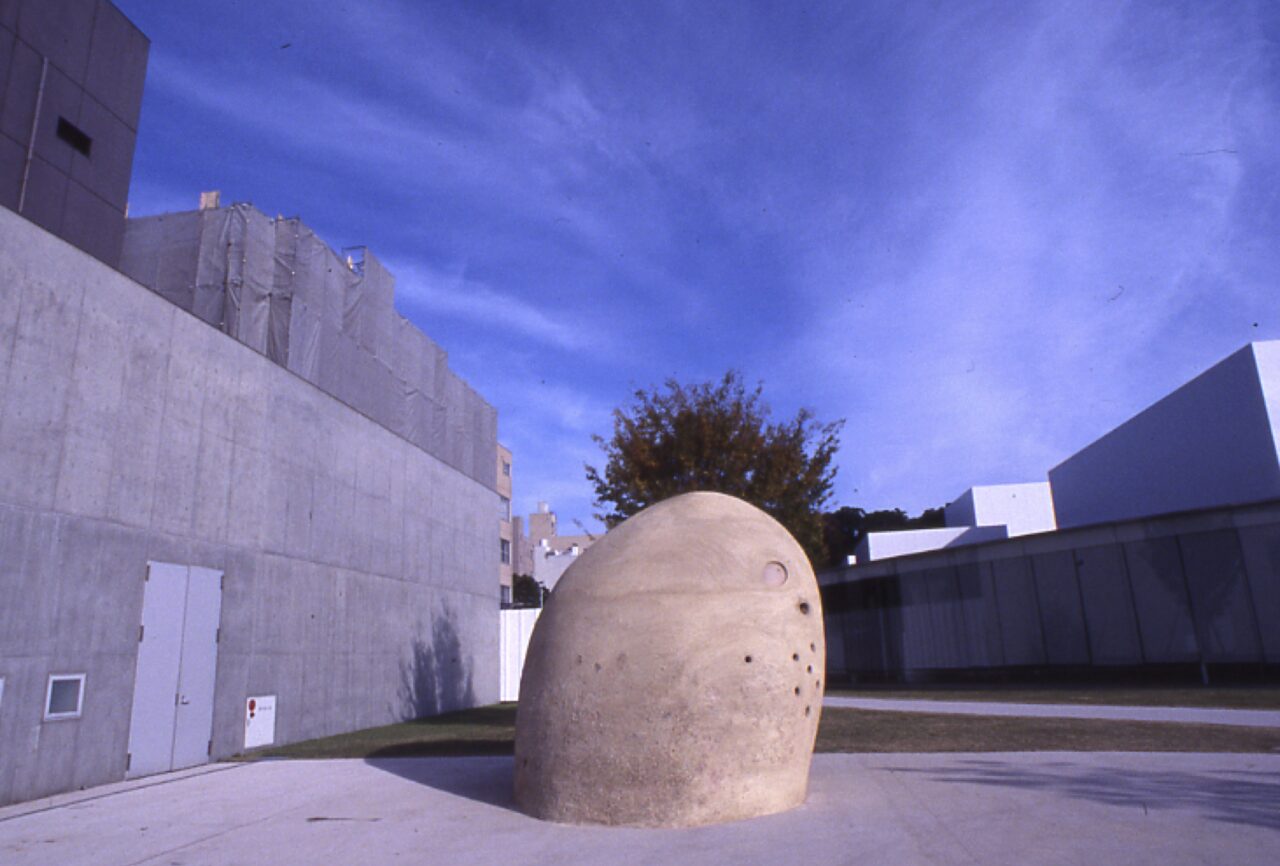 As a symbol of the Diatomaceous Earth Art Project to promote diatomaceous earth from Noto in the Ishikawa Prefecture, an earthen dome was built in the Kanazawa 21st Century Museum of Contemporary Art. It is a circular artwork that can be returned to the earth since it has not used cement or resin. In fact, after one and a half months of exhibition, it was circled back to the soil. The dome is made of earthen walls mixed with diatomaceous earth and soil that is painted to cover the bamboo flats and rough walls. Natural light pours in from the top and random openings. The breathing space of natural materials contrasts with the museum’s modern glassy architecture.
